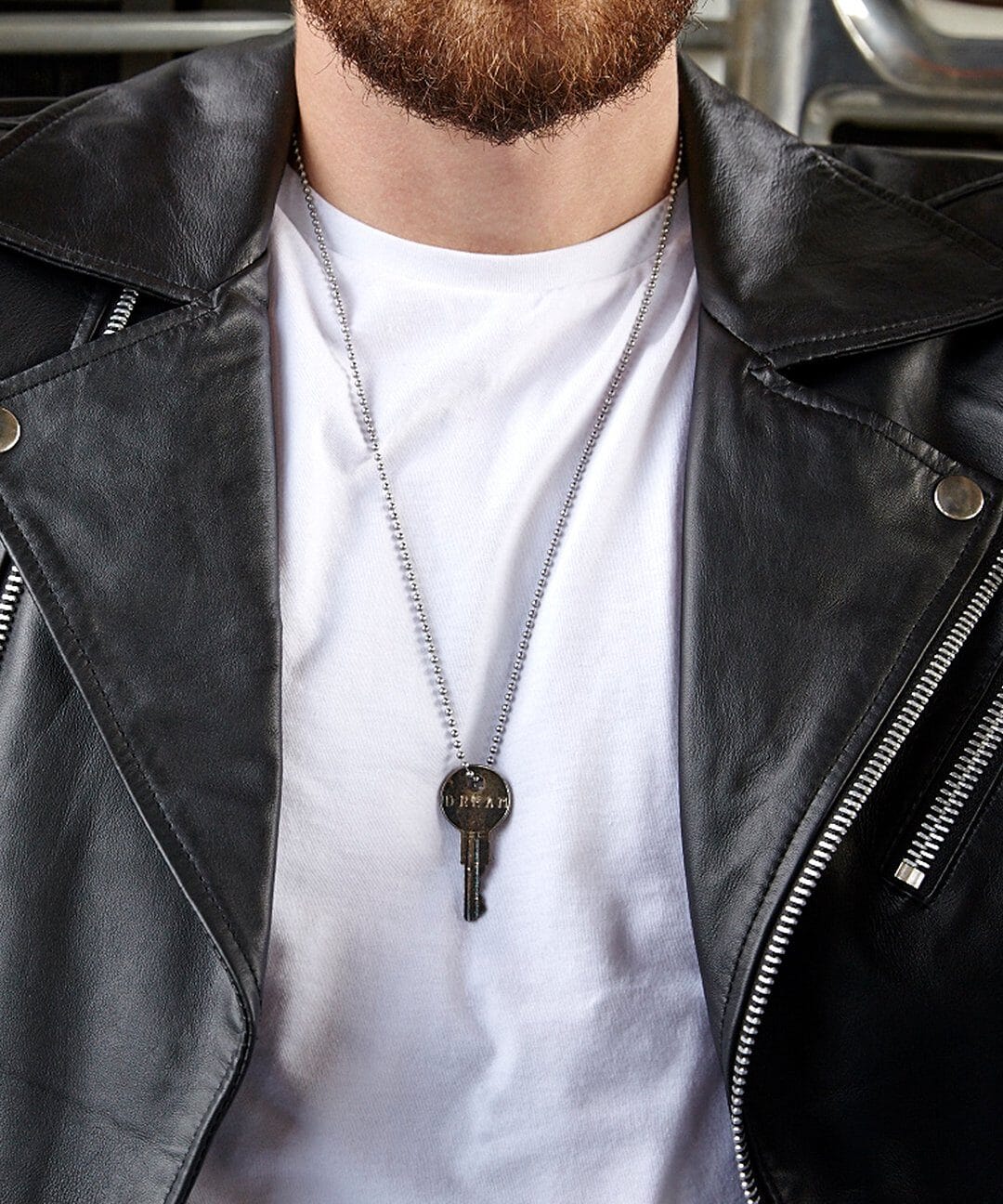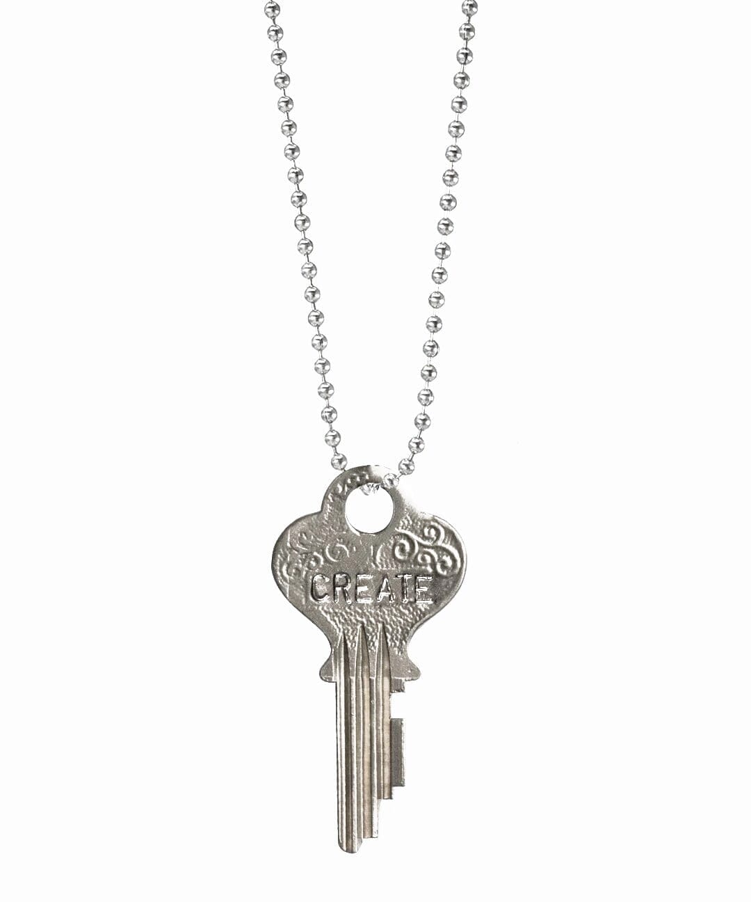 • A unique, one-of-a-kind key paired with a 30" gold or silver ball chain necklace
